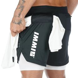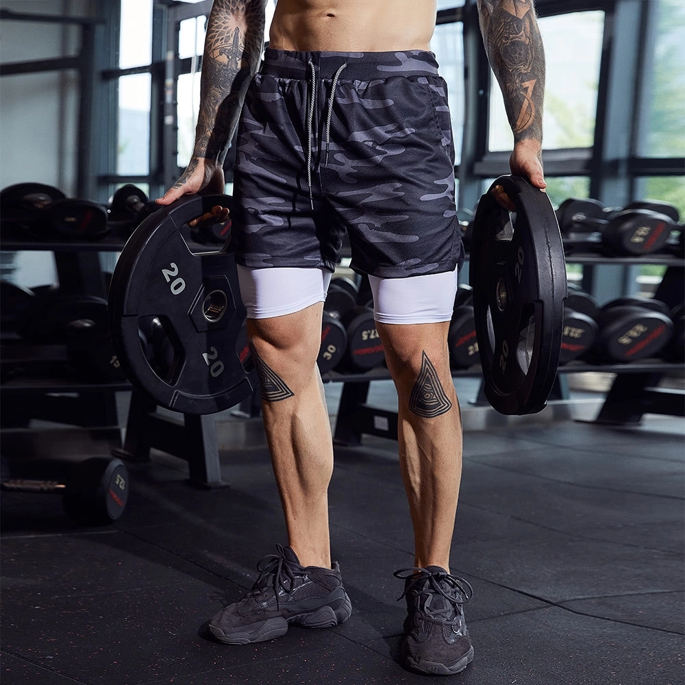 Men's double-layer sports shorts, made of polyester, soft and comfortable, smooth to the touch, quick-drying and breathable, with pockets in the inner layer, you can put mobile phones or keys and other items, the waistband can be adjusted, and there is a place to carry towels above the hips. You can use it when you exercise and sweat.10.2"Lx10.2"Wx3.5"H.