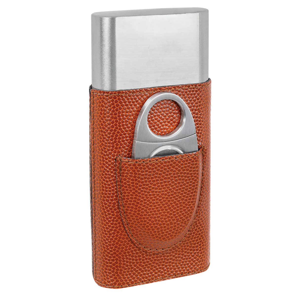 - Our Basketball Laserable Leatherette Cigar Case with Cutter boasts a textured surface inspired by basketball grip, seamlessly merging sports aesthetics with refined design for a unique and stylish accessory.